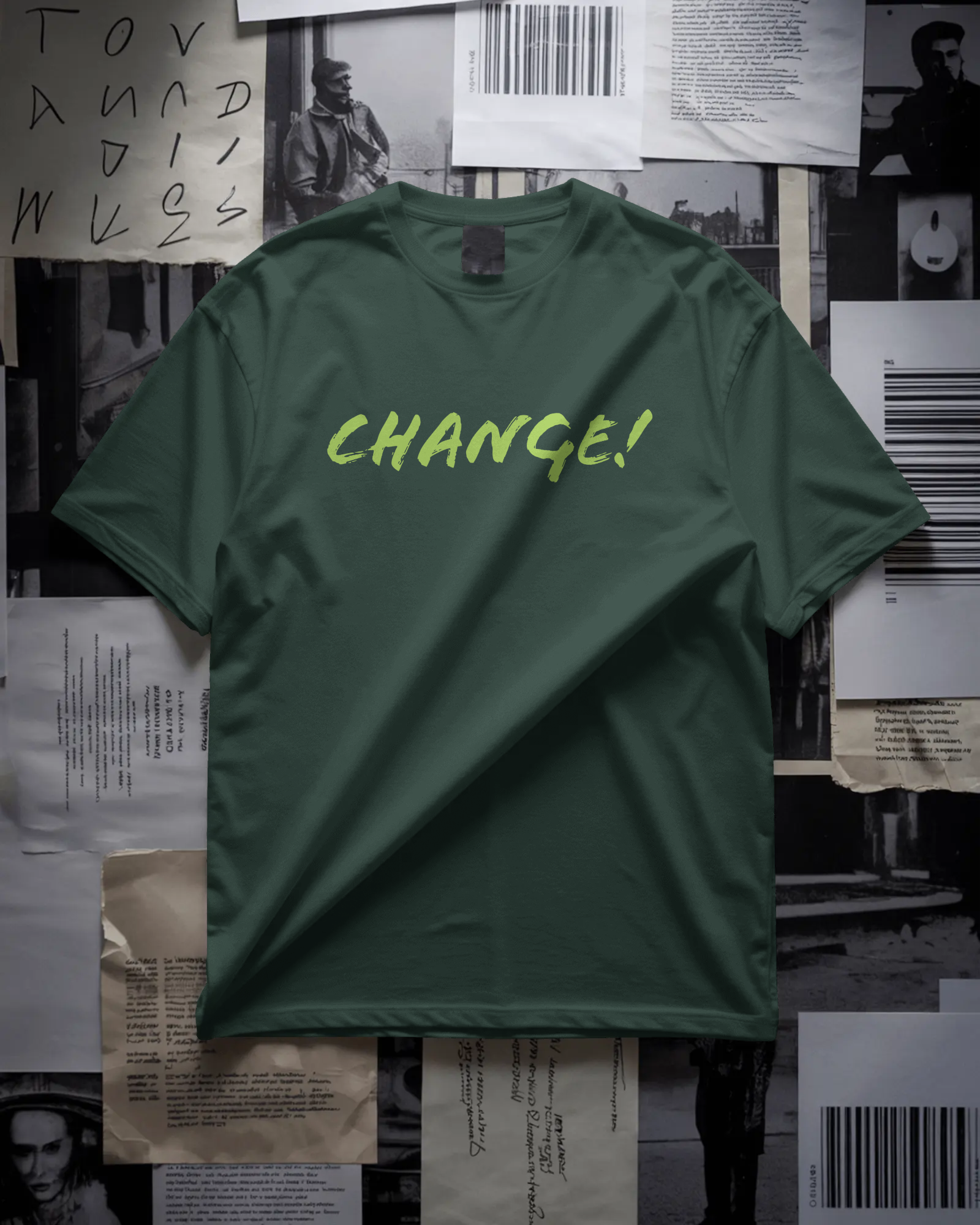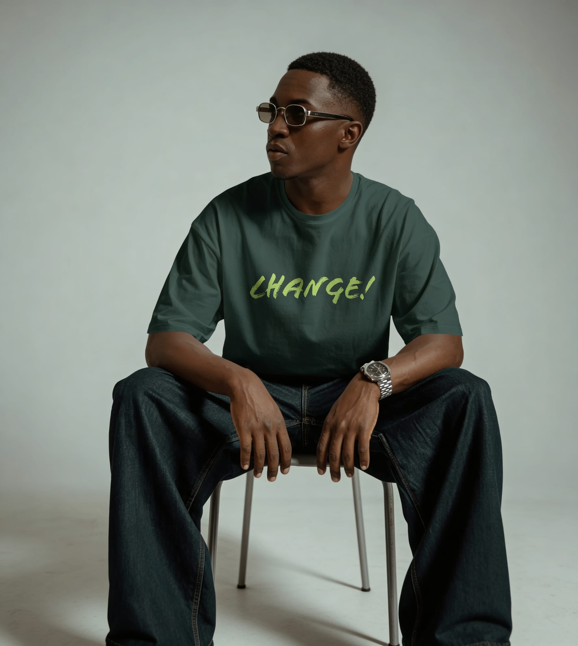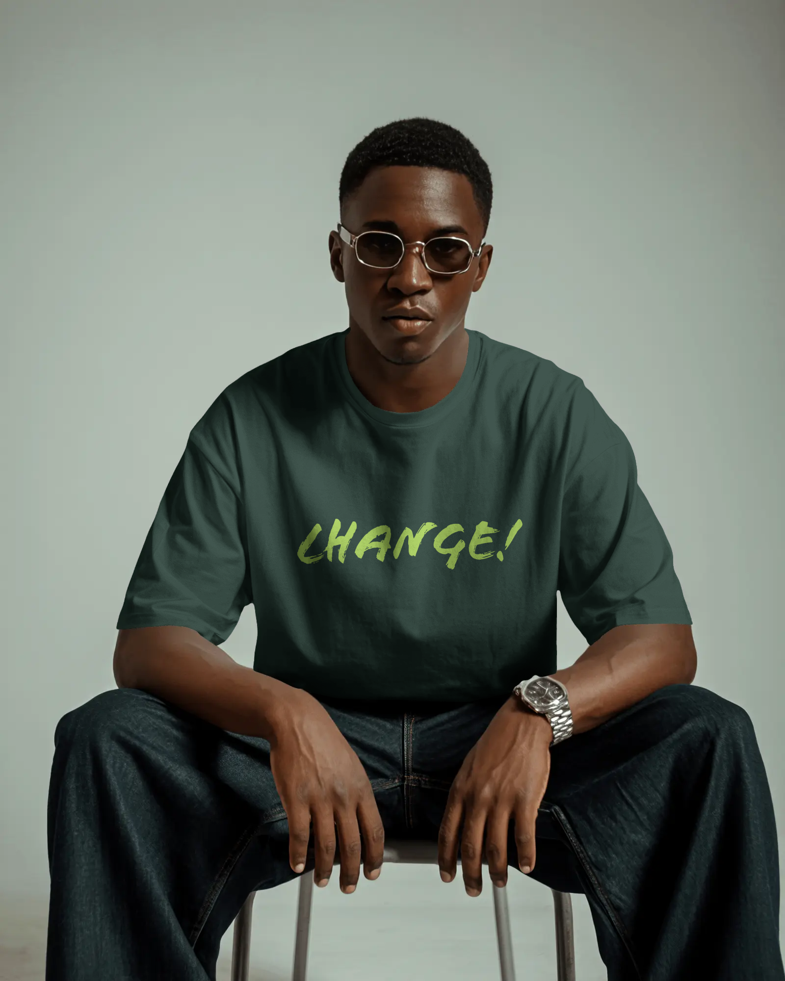 Change!. A raw brush-style wordmark with textured strokes, giving the typography a sense of motion and energy. The organic form feels immediate and expressive, capturing the essence of transformation in a single word.