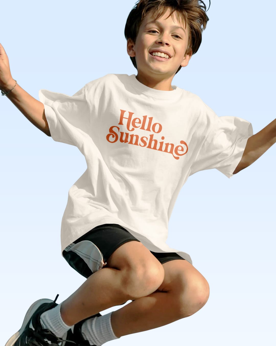 Hello Sunshine. A flowing handwritten script stretches across a deep black background, creating a soft, intimate visual. The loose strokes feel natural and personal, like a quiet greeting.