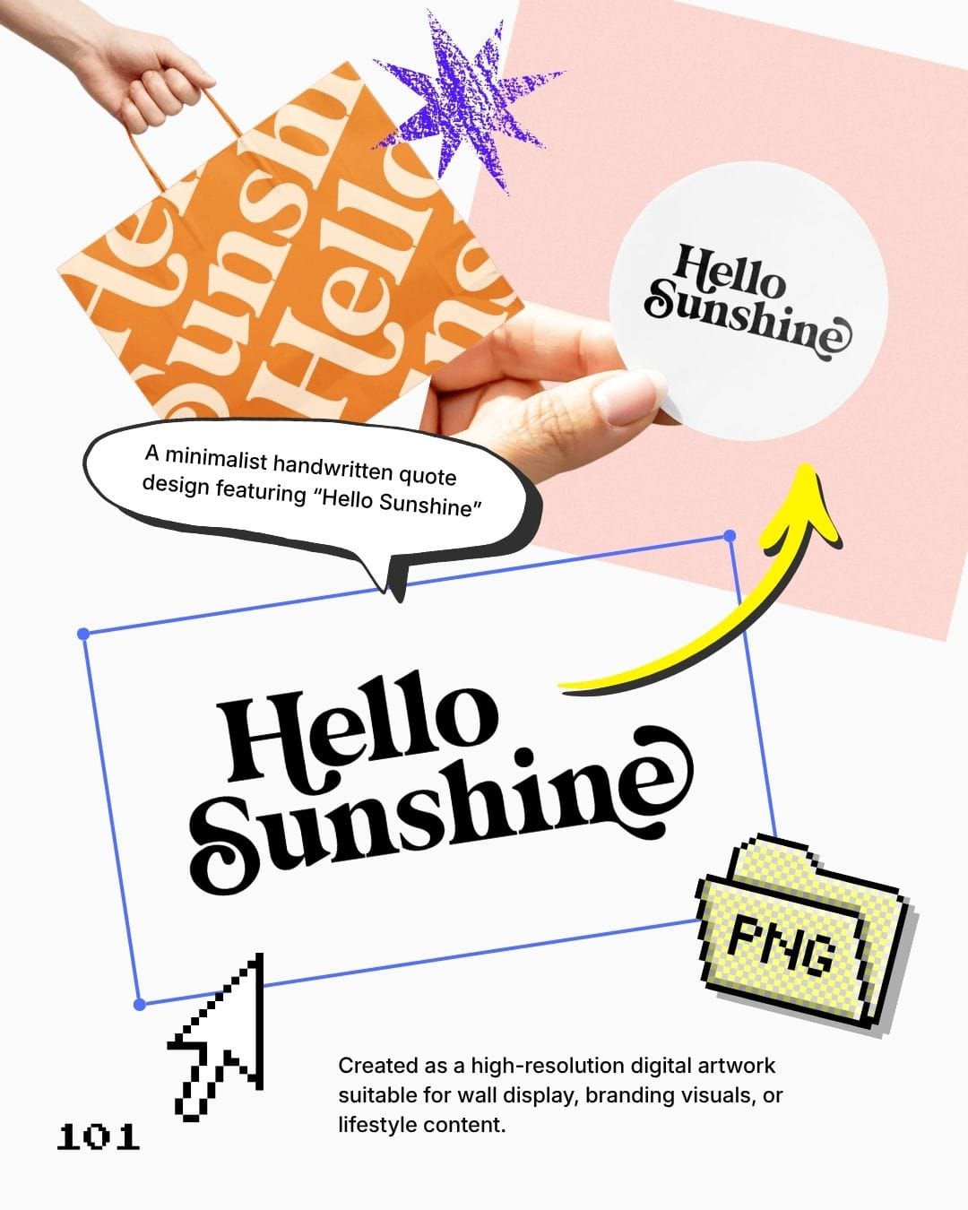Hello Sunshine Aesthetic Quote, Minimal Handwritten Script Art, Cozy Mood Black Background Design, Soft Positive Vibe Visual, Calm Lifestyle Expression