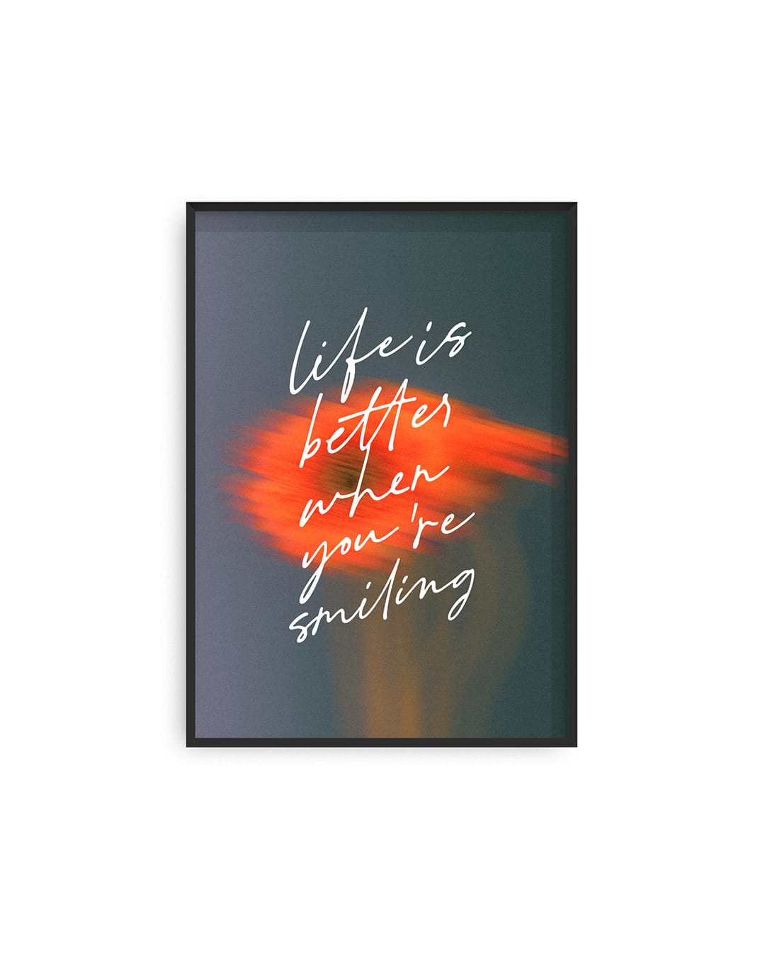 Life Is Better When You're Smiling. A fragmented visual narrative where glitch textures, layered imagery, and subtle typography merge to express optimism within chaos. This design balances distortion and clarity, creating a modern, thought-provoking composition.