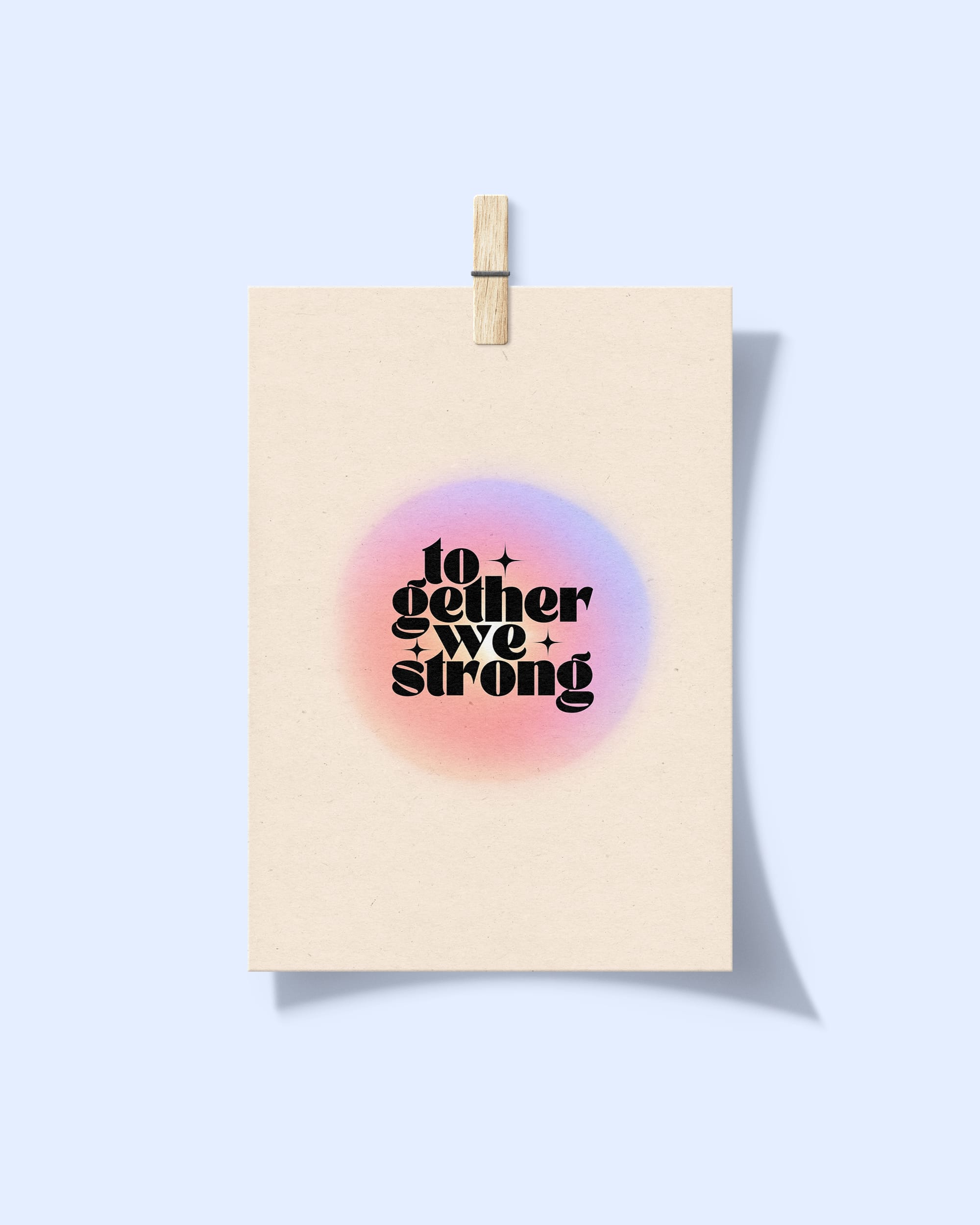 Together We Strong. Bold typography sits inside a soft gradient form, creating a strong yet balanced visual that reflects unity, support, and shared strength.