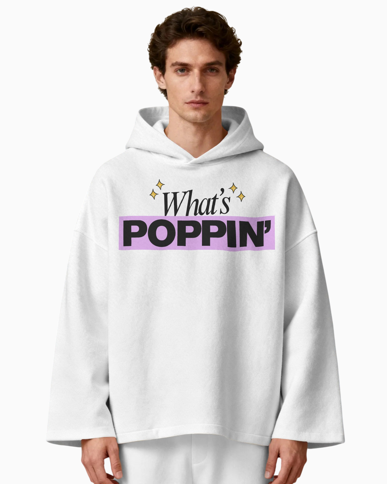What's Poppin'. A playful and confident typography piece that captures a light, upbeat mood through bold contrast and expressive lettering. The phrase “What’s Poppin” stands out with a strong, modern presence, while subtle decorative elements add a touch of charm and energy.